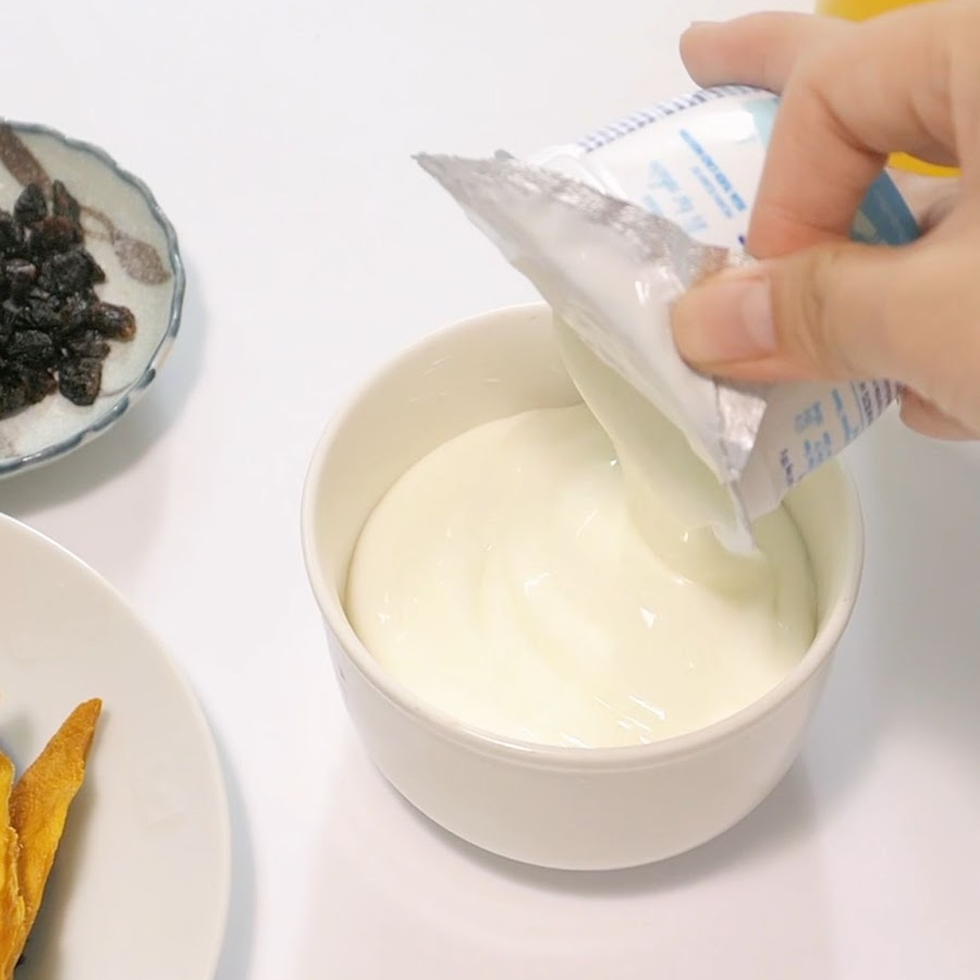 • Step 1: Scoop the yogurt into a bowl. We recommend chilling it beforehand to enhance the flavor.