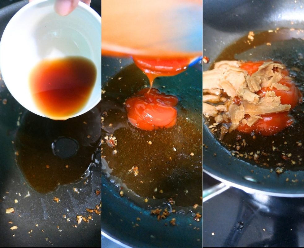 • Step 2: In the same pan, add the fish sauce, chili sauce, and palm sugar. Cook until the sugar is completely dissolved and the mixture slightly thickens into a syrup.