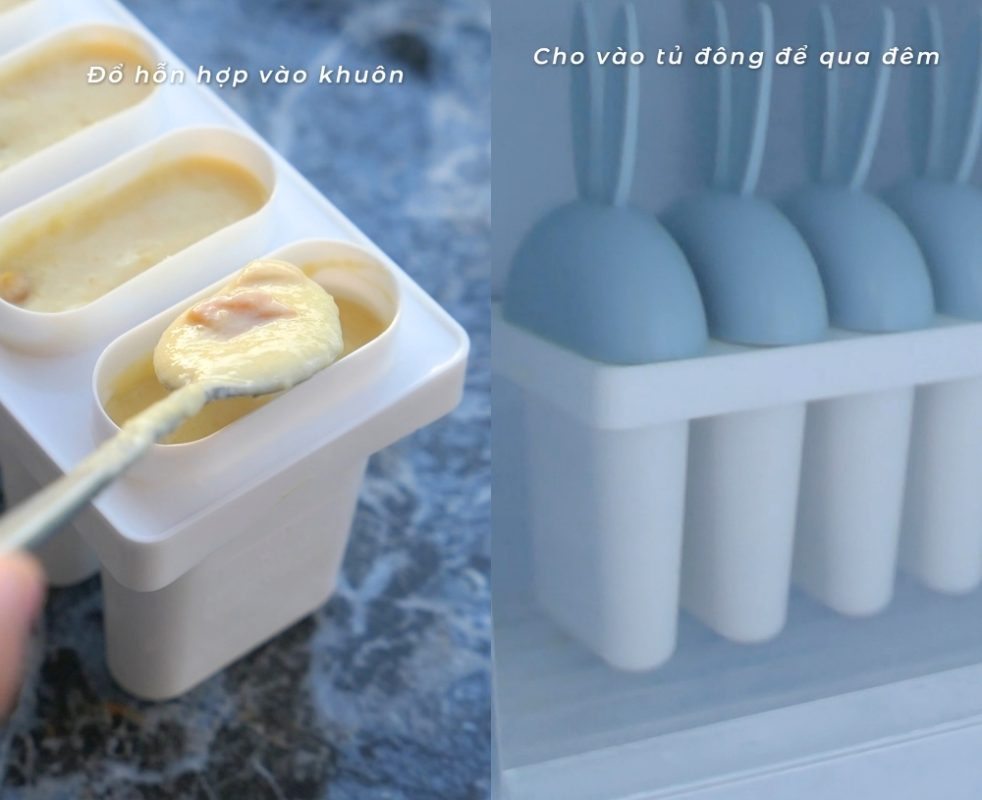 • Step 3: Pour the mixture into popsicle molds and freeze for at least 6–8 hours or overnight.