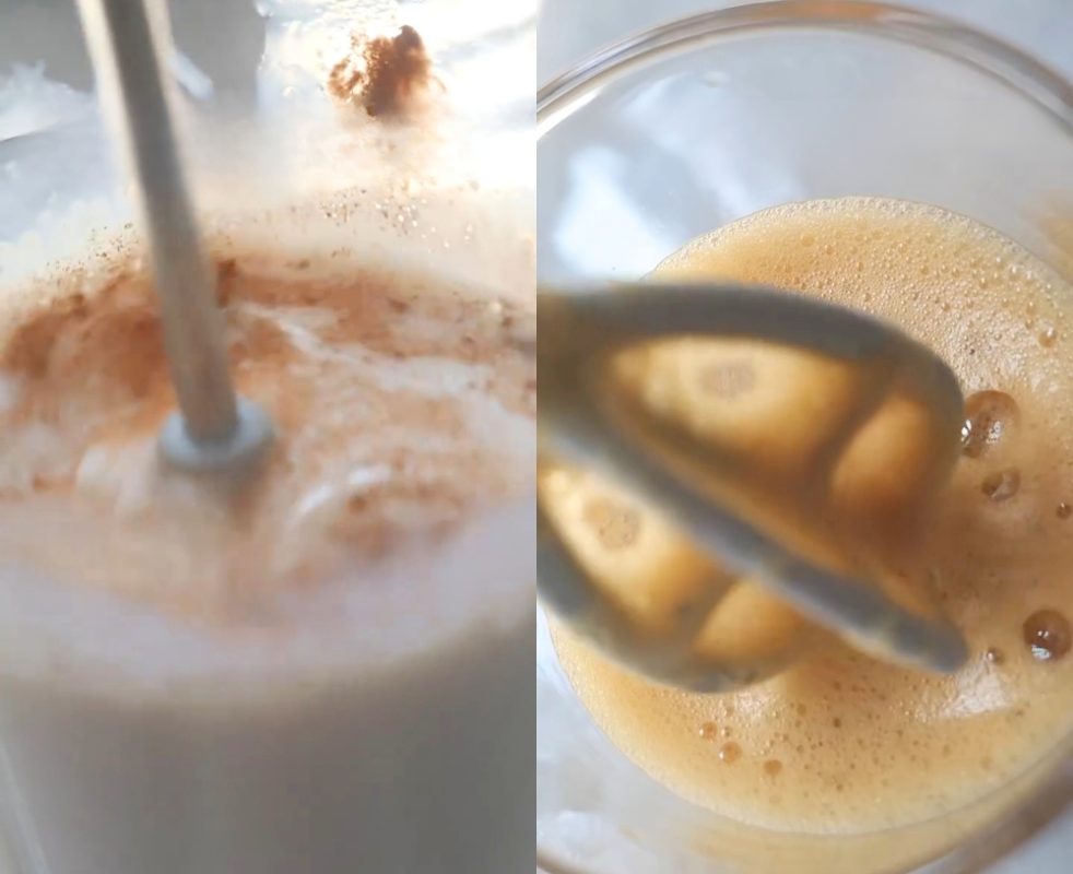 • Step 2: Place condensed milk, cinnamon powder, and unsweetened fresh milk into a blender and blend until the mixture develops a smooth, fine foam (you can also use a milk frother).