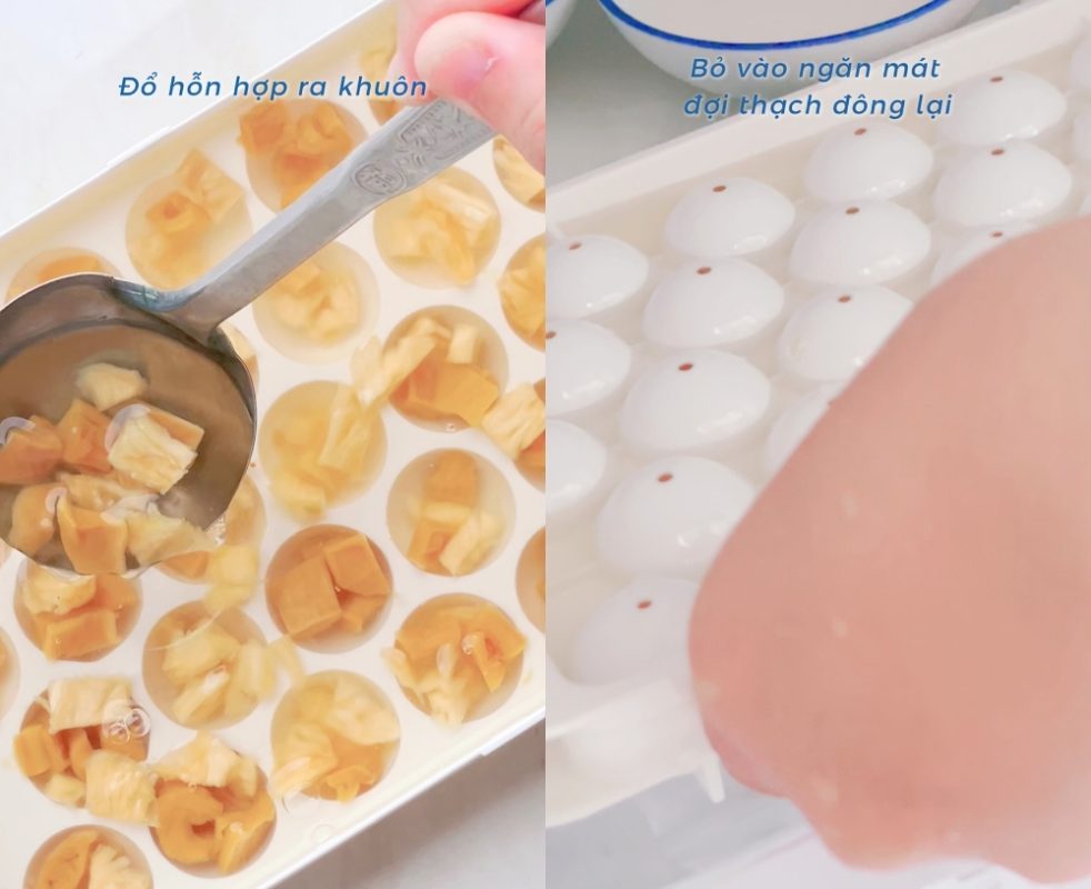 • Step 5: Pour the fruit jelly mixture into molds and chill until completely firm.