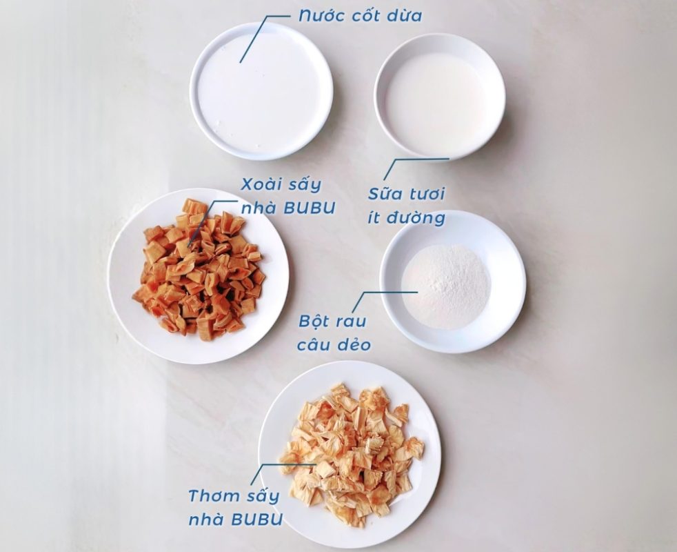 When you combine these two dried fruits with silky pudding and chewy jelly, you get a chilled dessert that’s not only visually stunning but also nutritious and full of flavor. Let’s make this refreshing Mango & Pineapple Pudding together with BUBU!