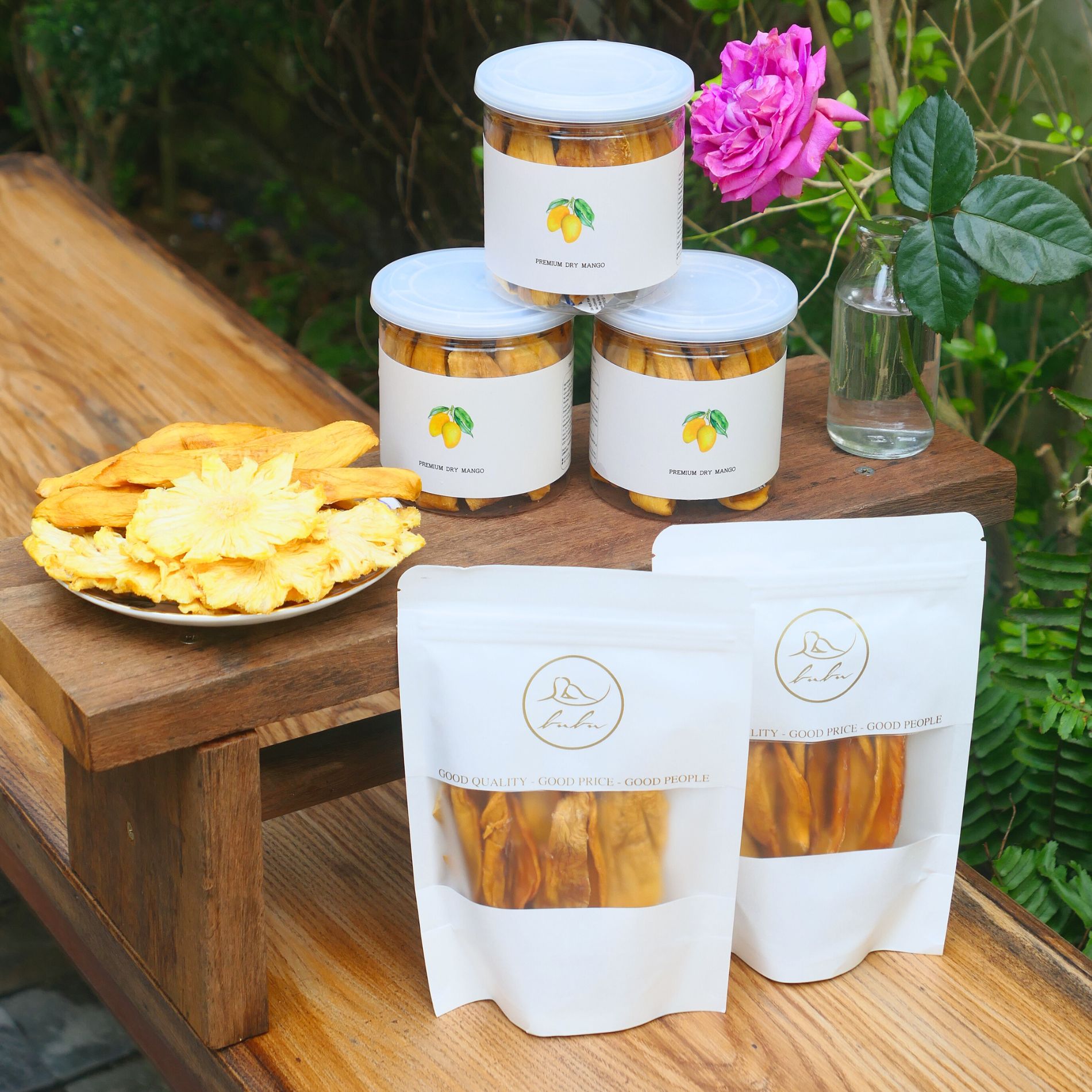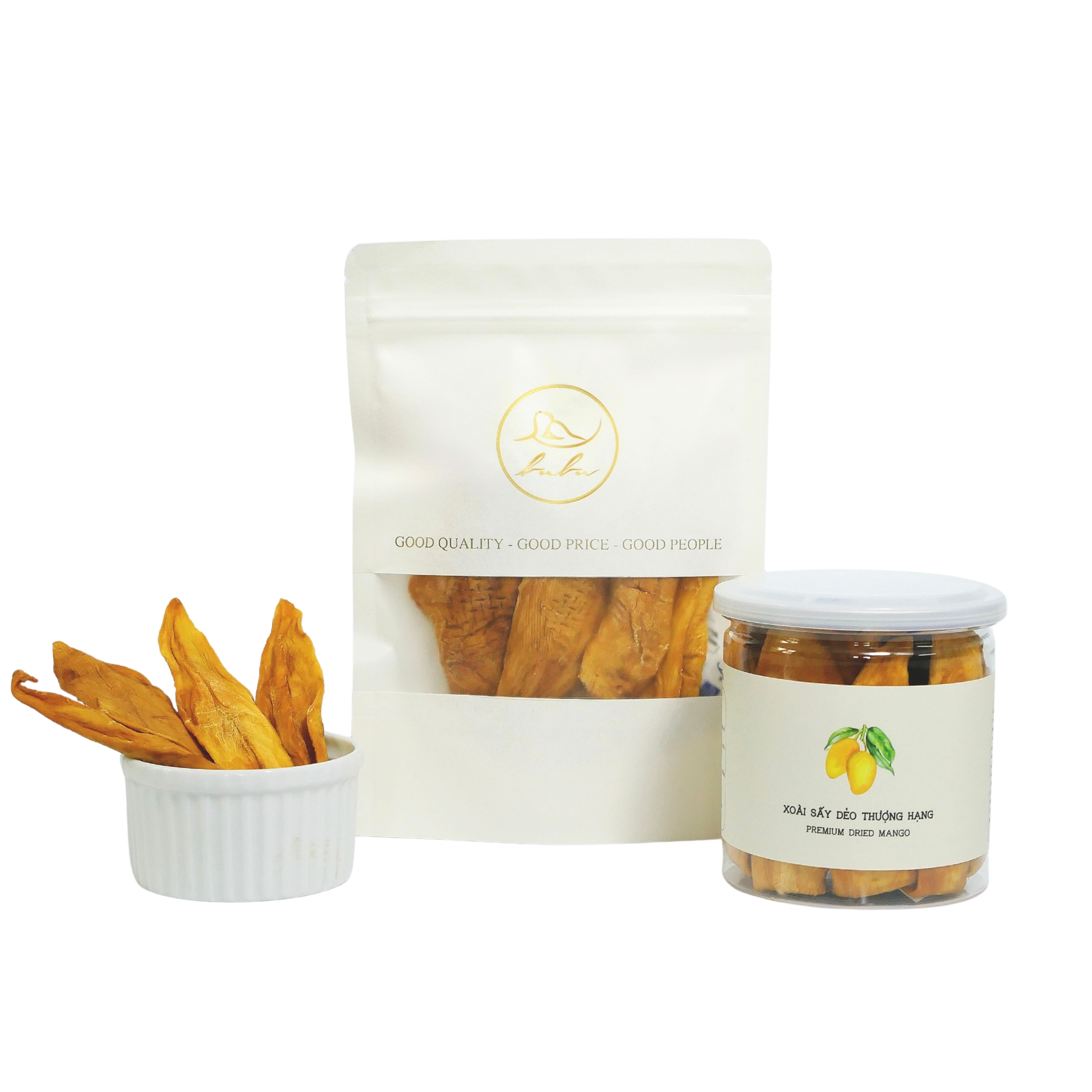 BUBU Premium Dried Mango is made from Hoa Loc mango – a famous specialty variety from Western Vietnam. The product preserves its natural golden color, rich aroma, and the signature sweet, delicate flavor of Hoa Loc mango. Using advanced drying technology combined with skilled craftsmanship, it preserved the nutrients without adding sugar, artificial coloring, or preservatives. With its soft, chewy texture and balanced sweetness, BUBU Premium Dried Mango is an ideal healthy snack that meets high-quality standards for both local consumers and export markets.