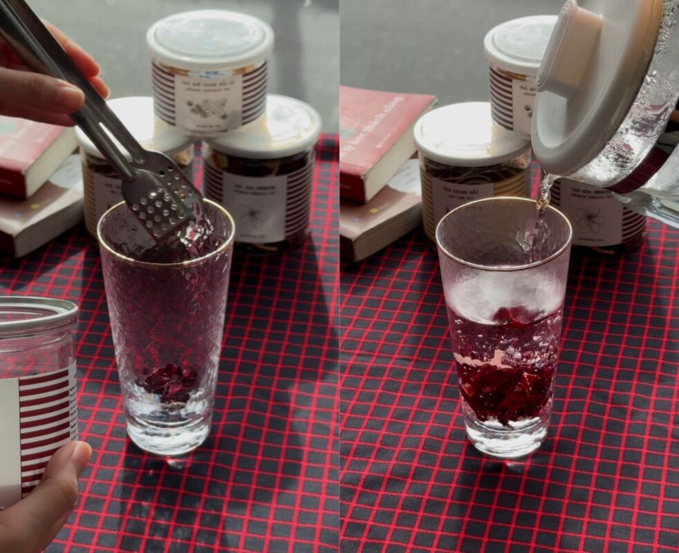 • Bước 1: Pha trà hoa Hibiscus BUBU với nước nóng, lọc lấy phần nước trà, để nguội nhẹ.